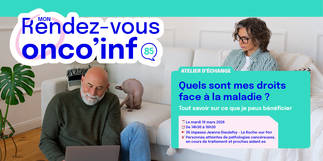 La Ligue contre le cancer de Vendée lance un rendez-vous Onco’Info, un atelier d’échange et d’information « Quels sont mes droits face à la maladie ? », gratuit et ouvert aux personnes atteintes d’une pathologie cancéreuse ou proches aidant.es. Il sera animé par Julie MARTINEAU, chargée de mission en alternance au sein du Comité, Lucie GAUTIER et Adeline GARCONNET, assistantes de service social de l’Assurance Maladie ainsi que la participation d’une personne du pôle financier de la CPAM.